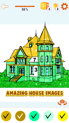 We are presenting you the great and anti stressing House Paint by Number House Glitter Color By Number Glitter Coloring Book app.